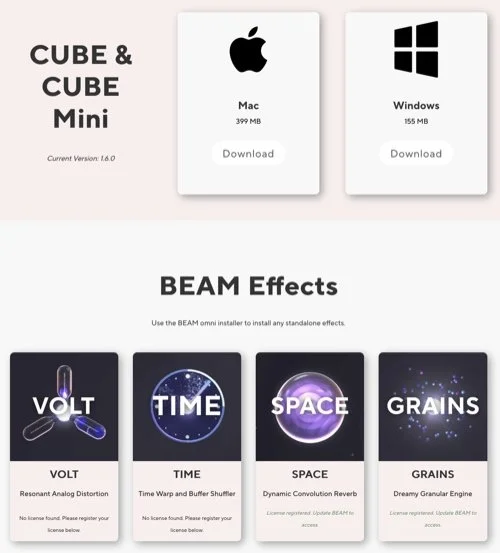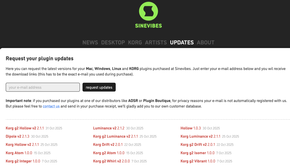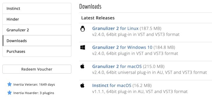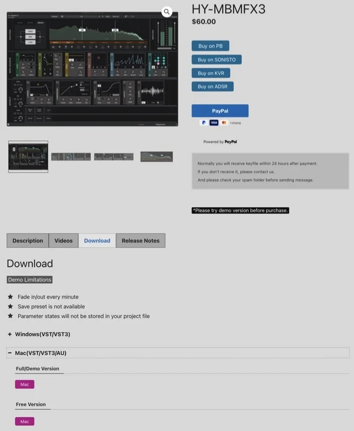 The issue I am wondering if anyone else has is remembering which format is which. One is a normal ITB plugin and the other is a special one for external hardware. Product shots must be found on the individual product pages, and as you can see in this example only the main version number is displayed, not the point updates.