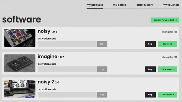 Product shots, version numbers shown and your serial number easily copyable all in one place.